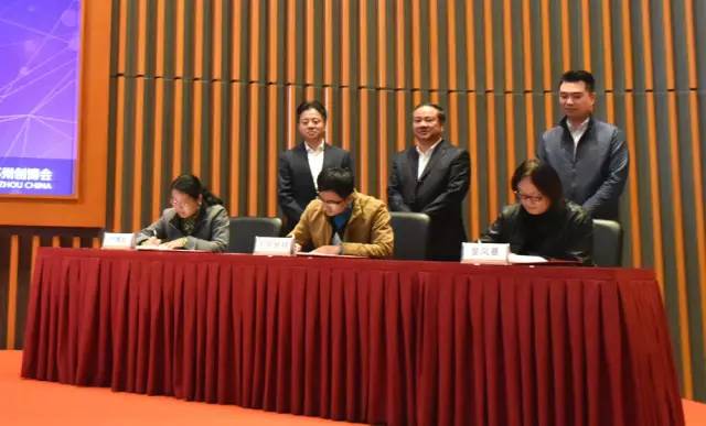 苏州市文广新局副局长谢芳,京东众创生态圈负责人靳毅,苏州星风暴互联网络有限责任公司董事长刘文征,上台进行签约。