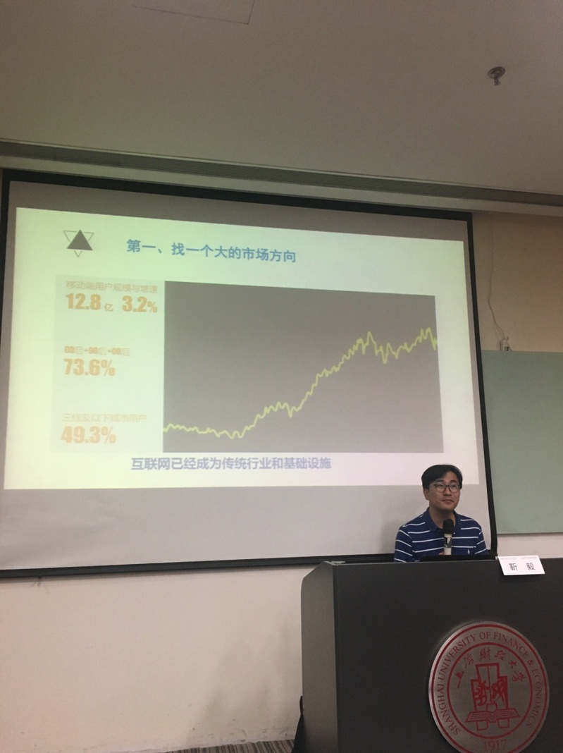 第一、找一个大的市场方法,他指出互联网已经成为传统行业和基础设施。我们必须像做研究报告一样分析未来5年投资爆发的必然风口。在靳老师看来,未来五年内以下五大风口必不可少:1.大消费:“只有变化是唯一不变的需求”,以新零售和小米生态链为例,当今消费升级进化的本质是零售的上半场是渠道为王,下半场是产品为王。企业的一把手必须全心全意投入到产品中,让产品成为企业的第一战略。消费升级的背后是品牌、品类、渠道、物流、供应链、产业链的全方位升级。2.创业机会巨大市场:企业服务于金融服务方向。3.科技发展下的文化娱乐,网红不是终点:边缘小众人群的复兴崛起。4.医疗健康行业的空间还非常大。5、区块链技术的本质是增强协作,靳老师解释了如何运用区块链技术改变防伪和供应链金融问题,以加深同学们对区块链技术应用的理解。区块链以其本身的特点和优越性将解锁更多的市场比如众筹、慈善、电子契约防篡改等等。